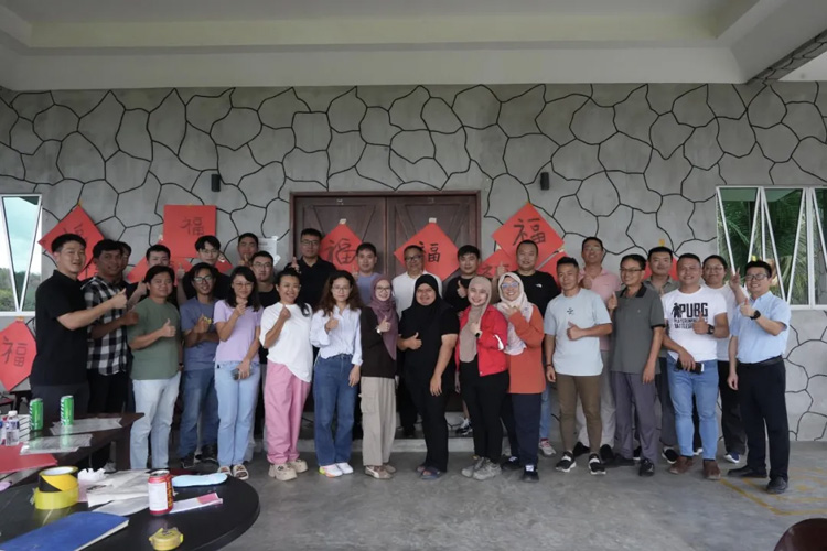 At project sites around the world, employees decorated offices and living areas with red lanterns, Spring Festival couplets, the character "Fu" symbolizing good fortune, and traditional Chinese knots, creating a joyful holiday atmosphere.