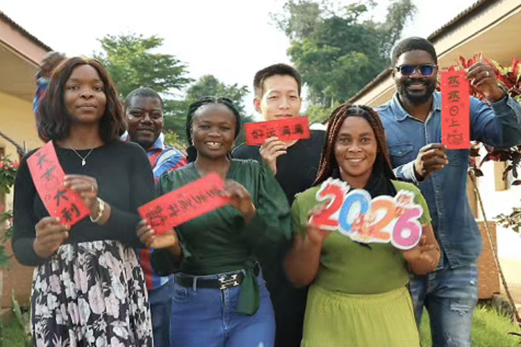 At a project site in Cameroon, employees dressed in traditional Hanfu and performed a lively lion dance to the beat of drums, bringing a touch of Chinese folk culture to the celebration.