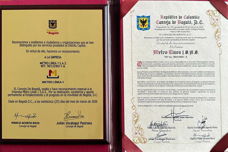 The project company and management team of Bogotá Metro Line 1 have been commended by the Bogotá City Council for their outstanding contribution to the project—marking the first time a Chinese infrastructure enterprise has received this recognition.